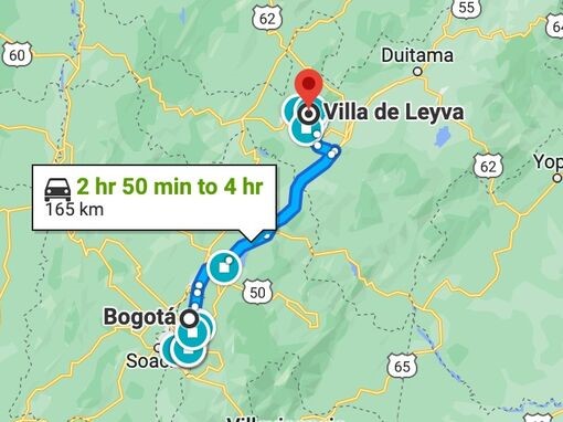 La mejor manera de llegar es volar a Bogotá y tomar el autobús proporcionado por los novios o reservar tu propio transporte.